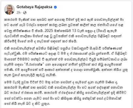 In a statement posted on his official Facebook page, Rajapaksa clarified that the building in question was not his property, and that previous media reports had wrongfully attributed ownership to him.
