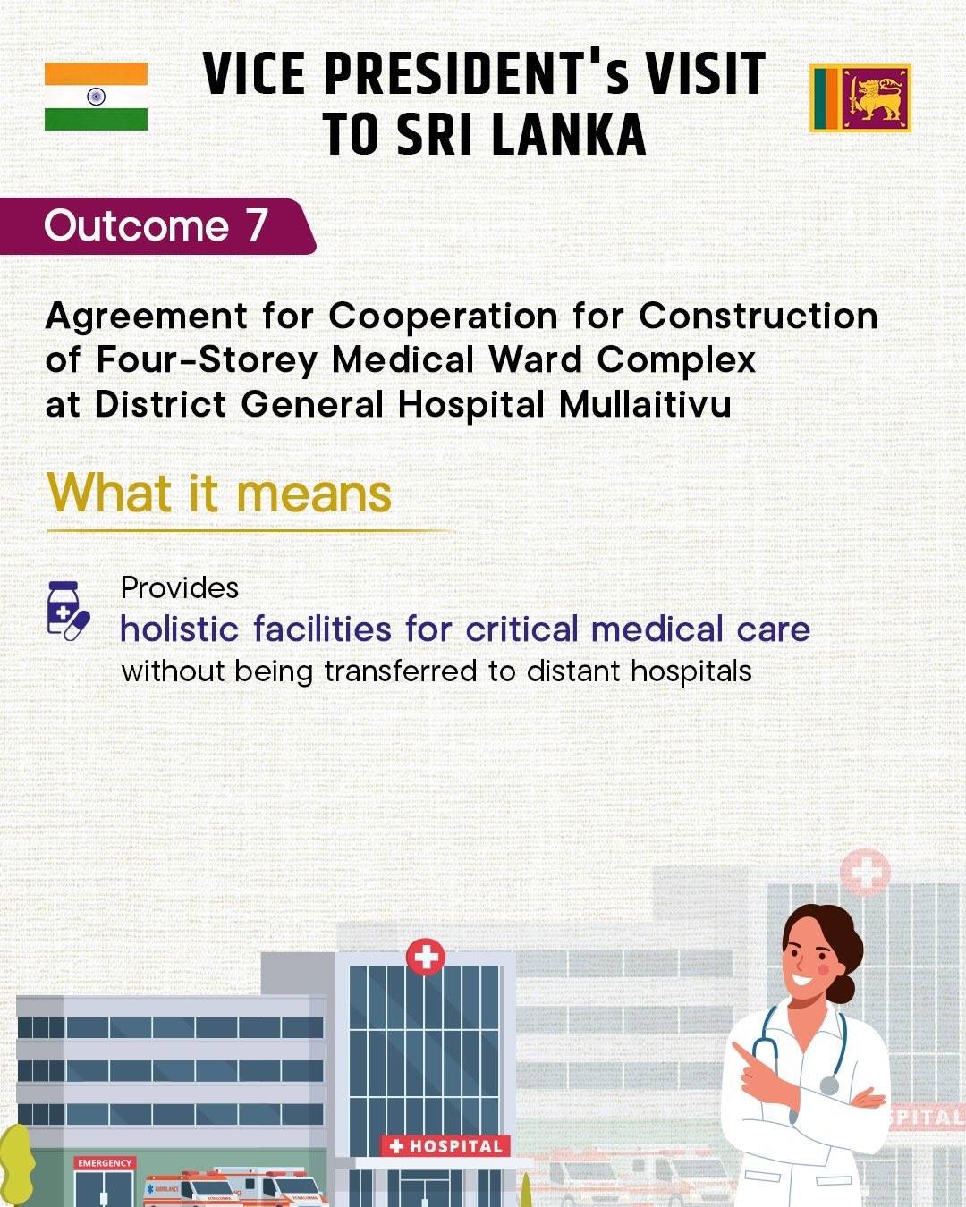 These included an MoU for the construction of a four-storey medical ward complex at the District General Hospital in Mullaitivu, and six MoUs for the implementation of priority projects under the Multi-Sectoral Grant Assistance for the Eastern Province.