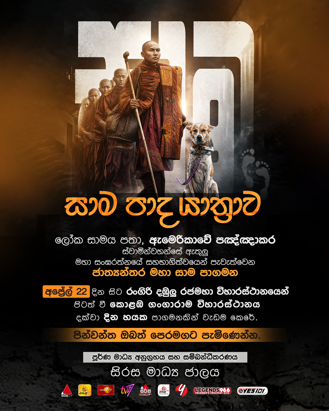 සාම පාගමන වෙනුවෙන් ඇමරිකානු සාම පාගමන සඳහා නායකත්වය දුන් පූජ්ය පඤ්ඤාකර ස්වාමීන් වහන්සේ ප්රමුඛ භික්ෂූන්වහන්සේ 12 නමක් මේ මස 21වන දා මෙරටට වැඩම කිරීමට නියමිතයි.