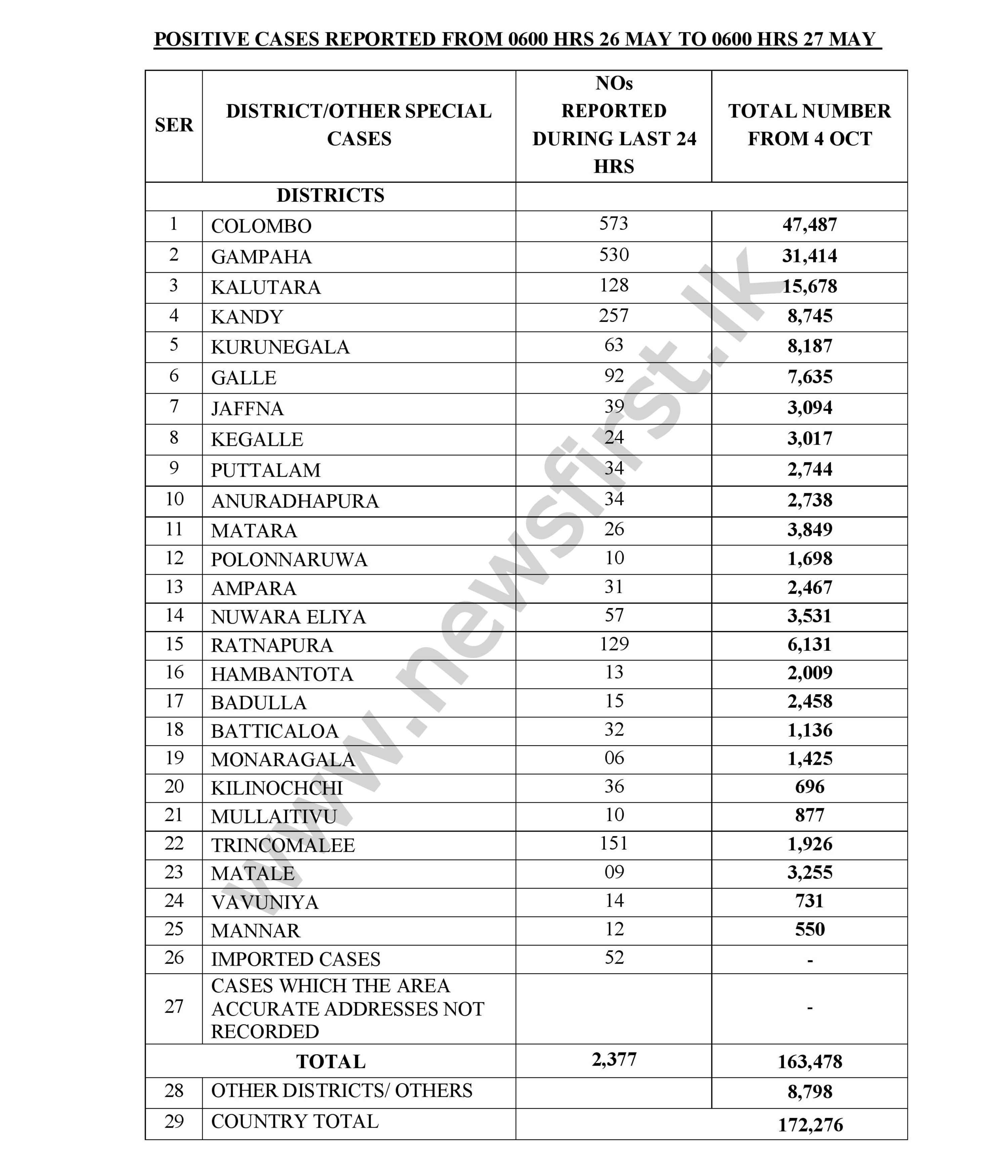 COLOMBO (News 1st); Sri Lanka recorded a total of 2,377 COVID-19 cases on Wednesday (26), said the Department of Government Information.