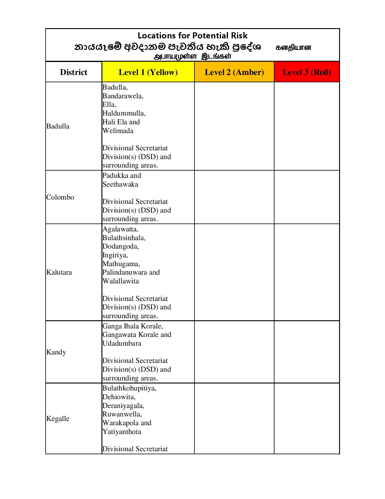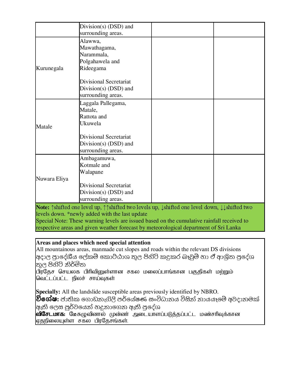 නායයෑම් පිළිබඳ පූර්ව අනතුරු ඇඟවීම් නිකුත් කර ඇති ප්රදේශ පහතින්...