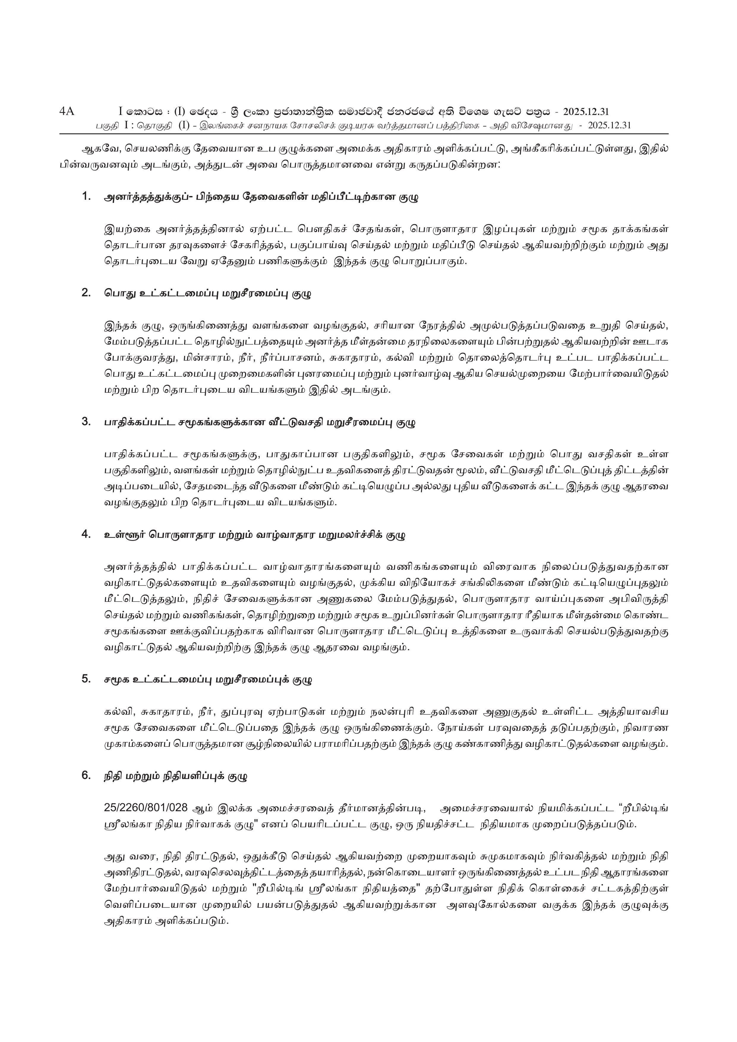 Colombo (News 1st) இலங்கையை மீண்டும் கட்டியெழுப்புவதற்கான Rebuilding Sri Lanka ஜனாதிபதி செயலணியை ஸ்தாபித்து அதிவிசேட வர்த்தமானி வெளியிடப்பட்டுள்ளது.